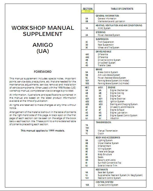 CHEVROLET RODEO, AMIGO 1998-2004, SERVICE, REPAIR MANUAL