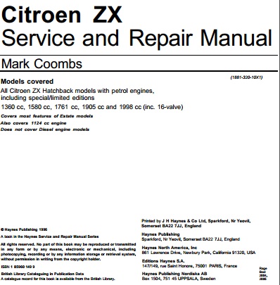 CITROEN ZX 1991-1998, SERVICE, REPAIR MANUAL