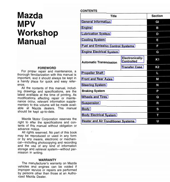 MAZDA MPV 1990-1999, SERVICE, REPAIR MANUAL